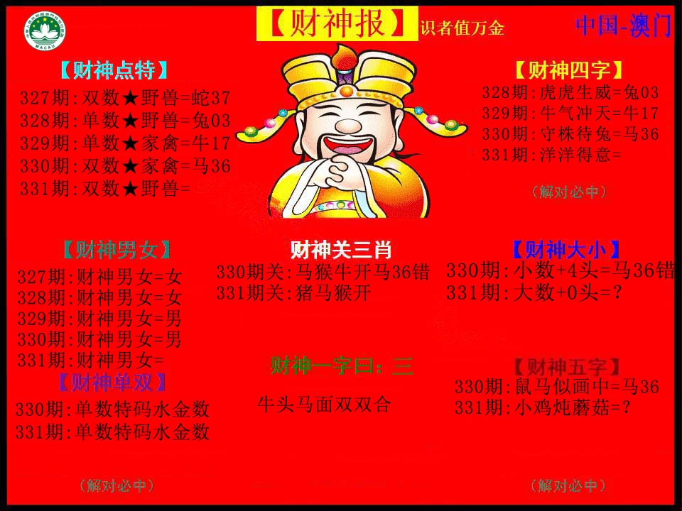 | 330期 | 单:羊兔蛇猪 | 双:虎鼠龙马 | 开?00 |